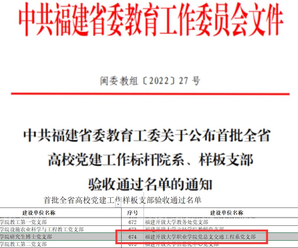 交通工程系党支部被评为福建省样板支部